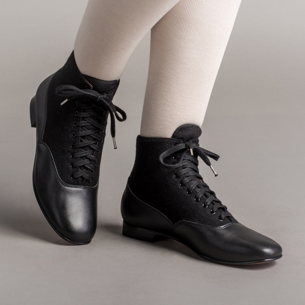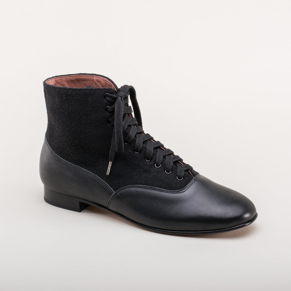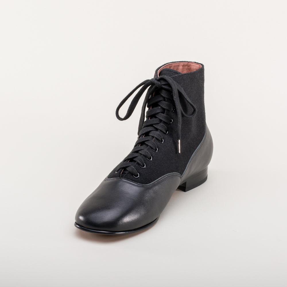 Larkspur Wool/Leather Lace-Up Boots (Black/Black)