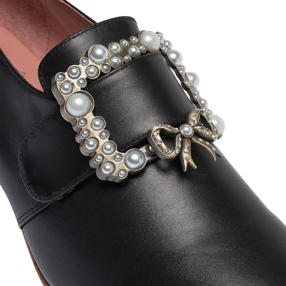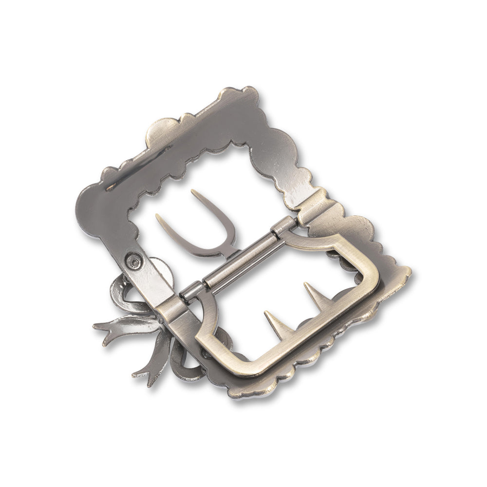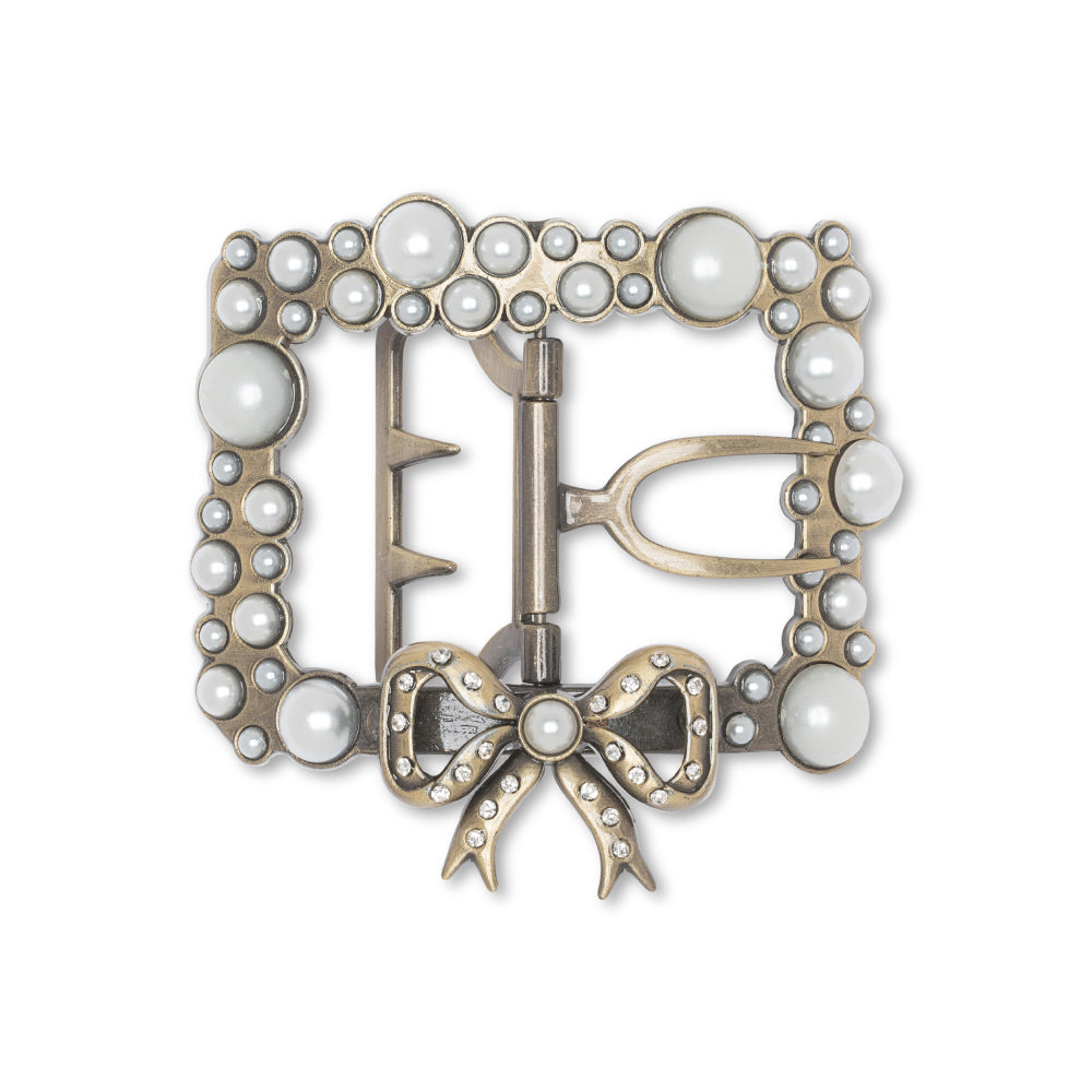 Adelaides do not come with 18th century shoe buckles. You may find our complete selection of 18th century shoe buckles in the accessories section. Please see our page on how to fit your buckles, or watch our shoe buckle fitting video for more information.