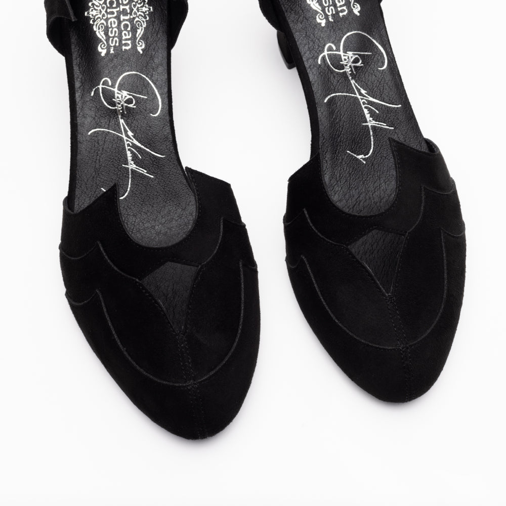 From the mind of Christine McConnell, introducing the Christine Pumps. Inspired by the open-sided pumps that were popular in the 1930s and 1940s, these sleek, sexy pumps from our collaboration collection with Christine McConnell are a veritable vision. Faux suede uppers in angular dimensions are set off by an alluring keyhole on the toe. Built on our perfectly balanced 2.5"/6.35 cm Cuban heel, leather-free Christine Pumps are a surefire way to add intrigue to your ensemble.