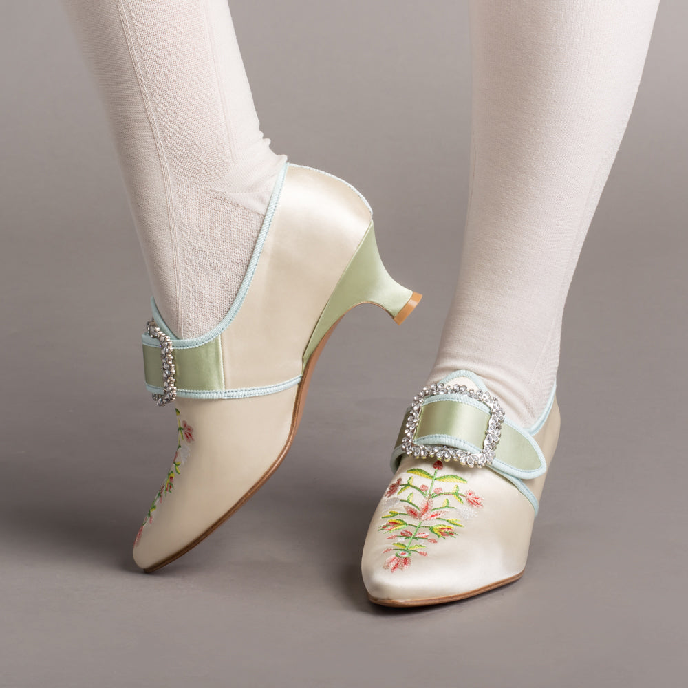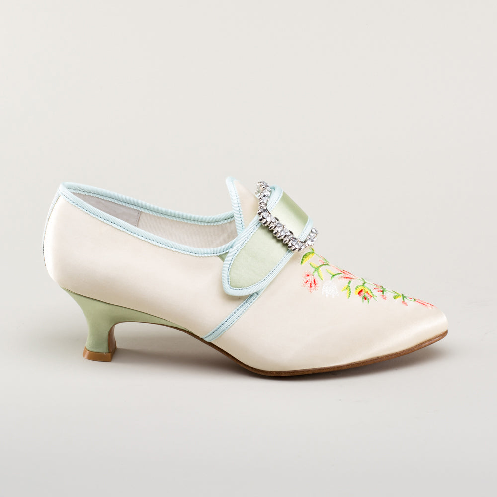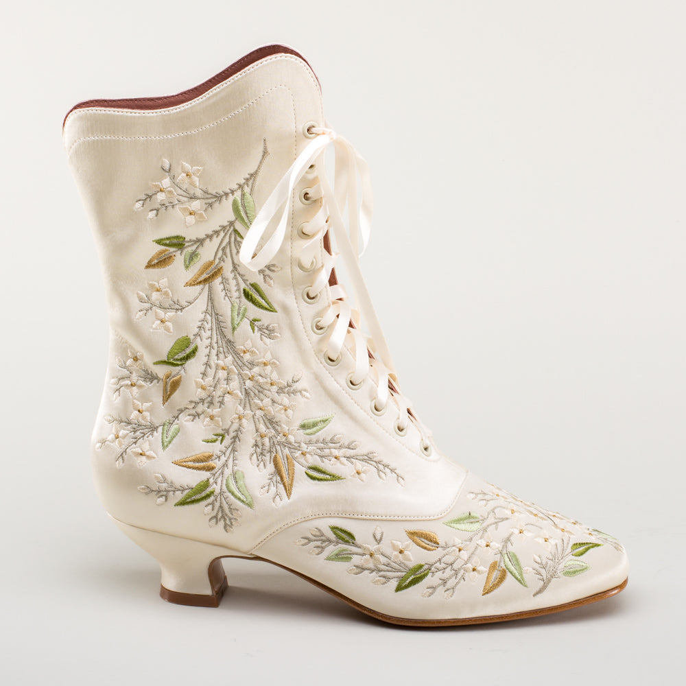Are you in search of unique and interesting bridal shoes to add a bit of interest or quirk to your wedding gown? Perhaps you are having a historical, vintage, or aesthetic wedding and are looking for wedding heels with a bit of pop. We have a lovely collection of white, ivory, and blue pumps, oxfords, and boots in a variety of shades, all with interesting historical details, silhouettes, and heels. We may just have the perfect bridal shoes for you!