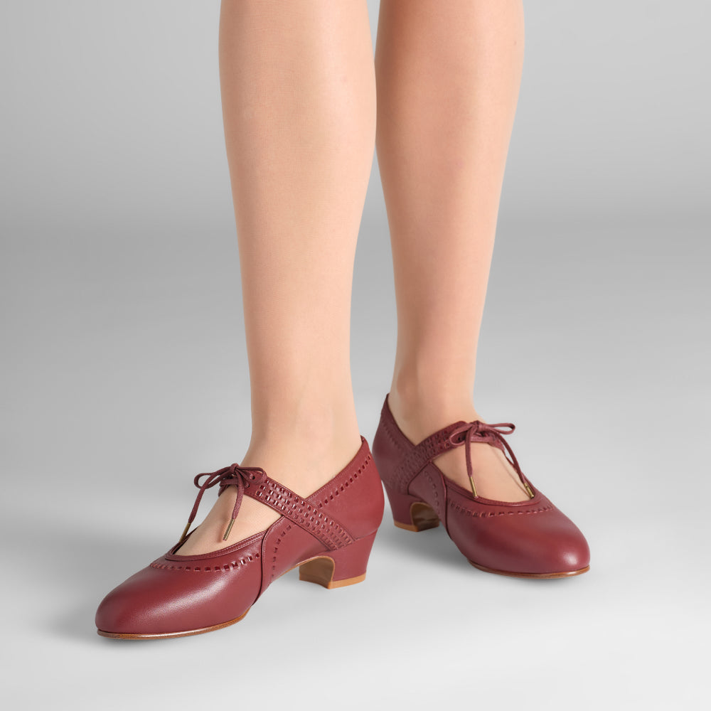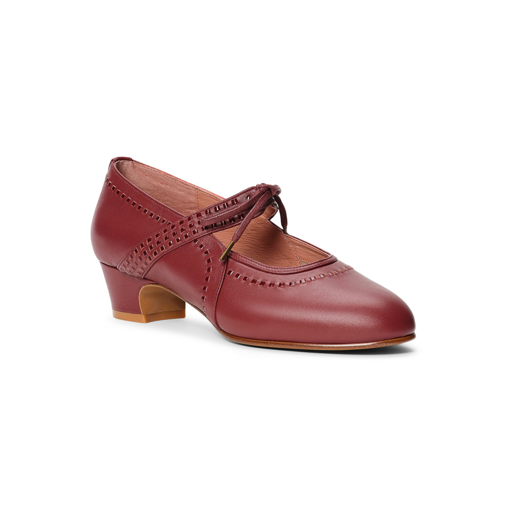 PRE-ORDER Margaret 1920s Shoes Wide (Red/Burgundy)
